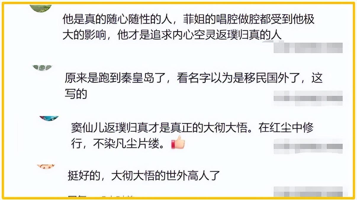 一个曾经享受过无限鲜花和掌声的歌手,最终却选择过上了平淡的生活,这才是真正的与世无争和随心随性。