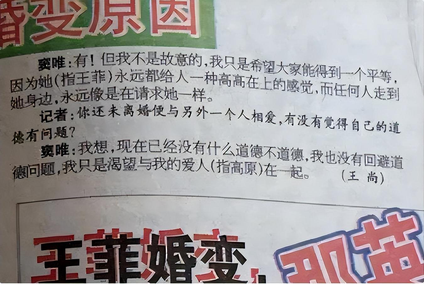 王菲永远都是一副高高在上的样子,没有人能适应在她身边生活,而自己不过是渴望和自己的爱人在一起。
