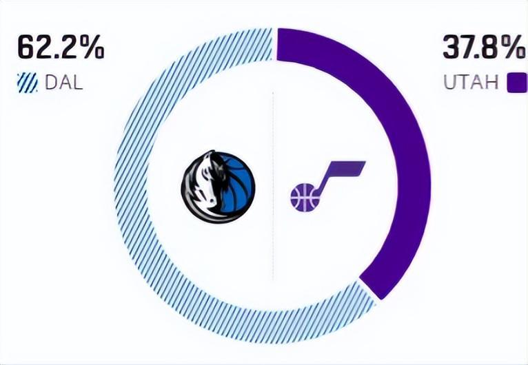 赛前,美媒ESPN对本场比赛进行了胜率预测,独行侠队胜率高达62.2% ,爵士胜率则仅有37.8%,虽然同为西部倒数,但胜率差距也挺大。