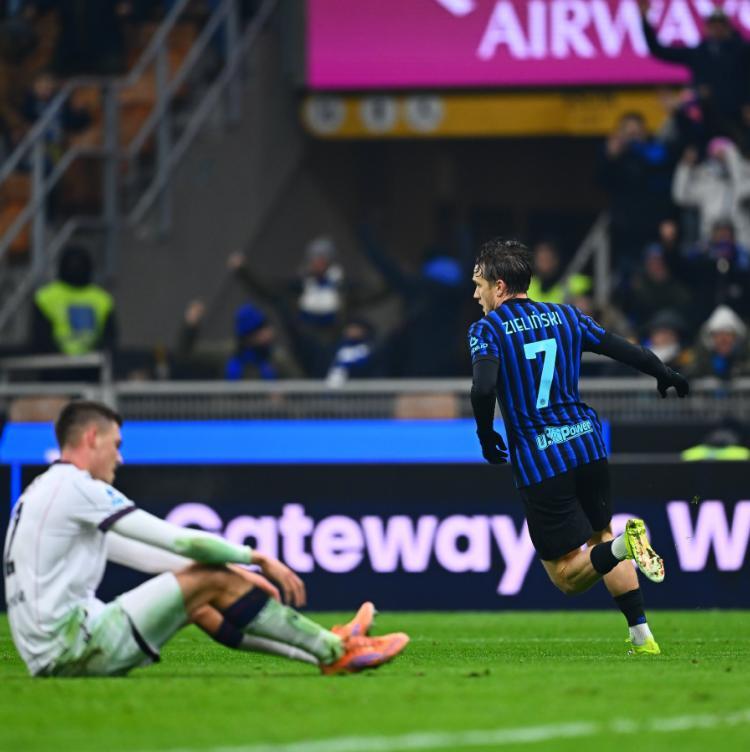 第26分钟国米再次制造杀机,巴斯托尼的甩头攻门,再次被博洛尼亚的门将拒之门外,不过狂攻不止的国米,还是在半场结束前打破了场上的平衡,劳塔罗右路牵制防守后,无私横传给了左路,泽林斯基迎球怒射建功,国米带着1-0的优势,回到了中场更衣室。
