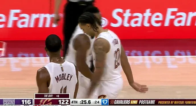 比赛第四节,泰森抛投打进,骑士最后25秒领先国王6分几乎锁定胜局。